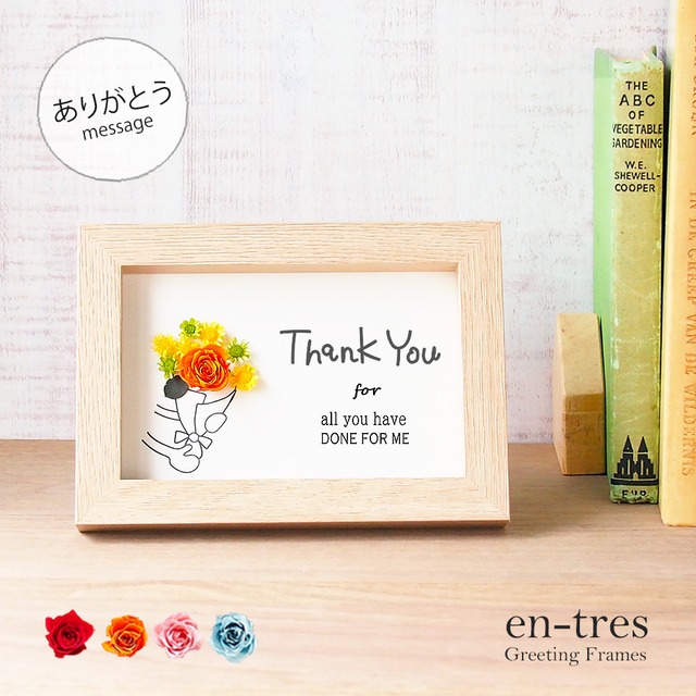 自然素材のお花でデコレーションしたグリーティングカード。フレームに入っているのでもらった後に飾ることができる贅沢なカードです! デザイン・製作はすべてエントレスオリジナル。ハンドメイドでお作りしています。 感謝の気持ちやありがとうの思いを伝えたいけど、メールじゃそっけないしお花を贈るのは大げさだし・・・何てことありませんか?そんな時に活躍してくれるのがこのグリーティングフレーム!お花を贈りたい気持ちと届けたい言葉をフレームに閉じ込めました。 母の日・父の日・敬老の日はもちろん、退職や卒業のお別れの時に今までの感謝の思いを伝えられます。 お届方法もポスト投函のメール便なので、受け取る方も負担なく受け取れます。 【サイズ】 ・フレームサイズ:W17.6×L12.5×D2.2cm 【素材】 ・花:ドライフラワー(天然素材) ・フレーム:繊維版、紙、鉄 ・パッケージ:PVC 【配送方法】 ・メール便:送料無料 ・宅配便:600~1000円