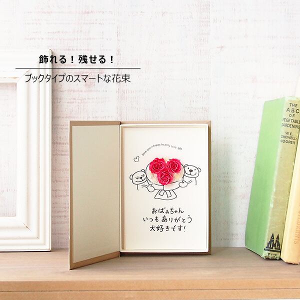 自然素材のお花でデコレーションしたグリーティングカード。ふっくら分厚いブック型のボックスタイプなのでもらった後に飾ることができる贅沢なメッセージカードです!