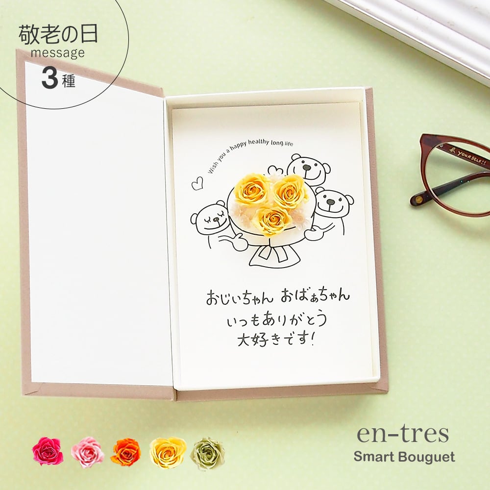 50043 敬老の日 プレゼント 花 ギフト メッセージカード 手作り いつもありがとう 大好きです!バラ3本 ボックスフラワー 送料無料