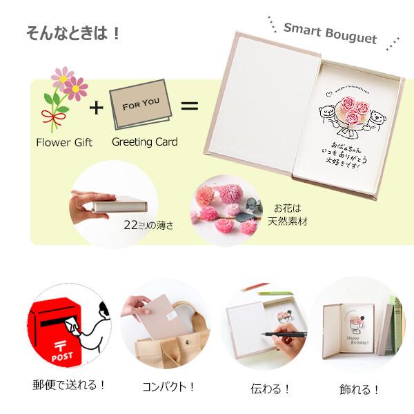 フリースペースにメッセージを加えたり、写真を貼ってデコしたり、いろいろ楽しめます。もちろんそのままでもかわいい。伝えたい気持ちがより伝わる手作りカード!