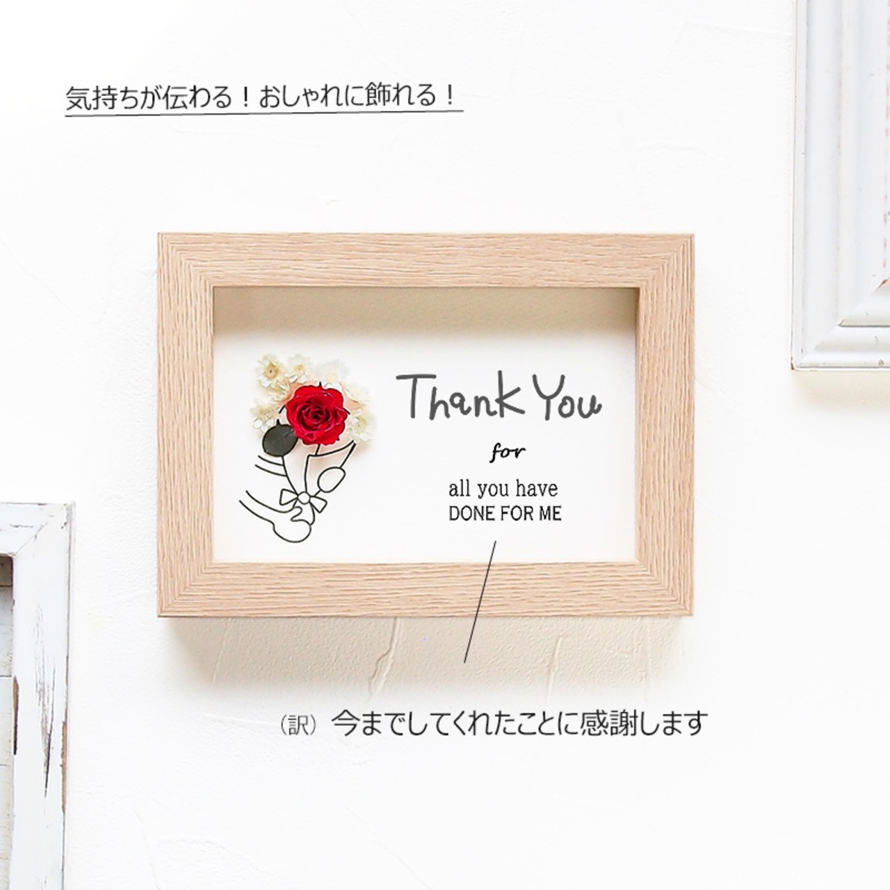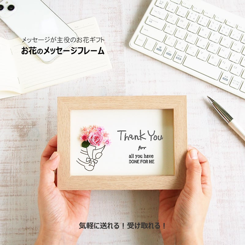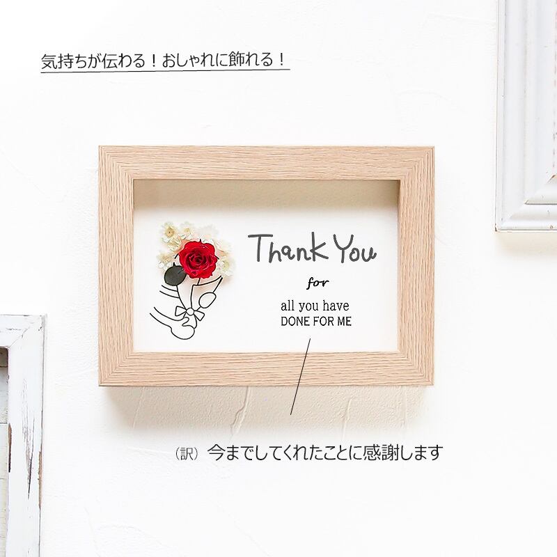 感謝の気持ちやありがとうの思いを伝えたいけど、メールじゃそっけないしお花を贈るのは大げさだし・・・何てことありませんか?そんな時に活躍してくれるのがこのグリーティングフレーム!お花を贈りたい気持ちと届けたい言葉をフレームに閉じ込めました。