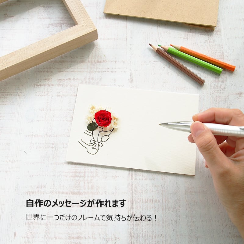 30012 メッセージカード 手書き 多目的 プリザーブドフラワー ローズ バラ ポスト投函 ギフト 花束 ブーケ 手作り 立体 おしゃれ フォトフレーム付き プチギフト 送料無料