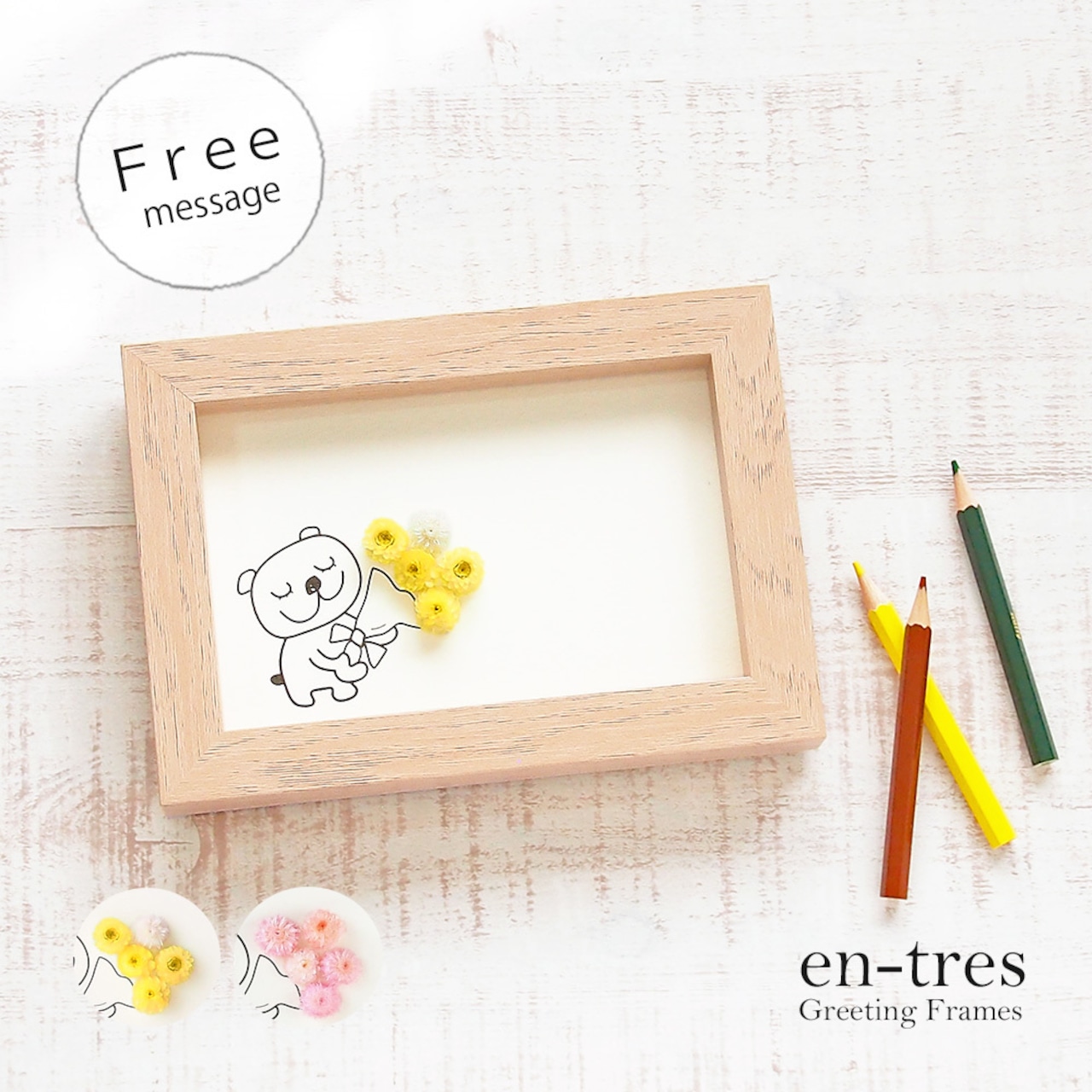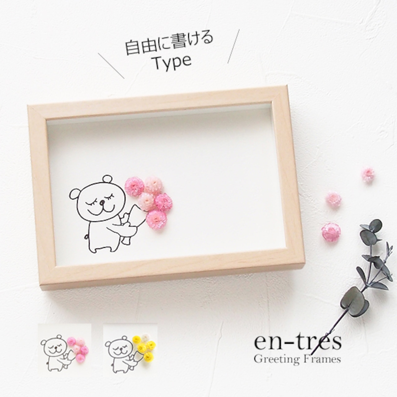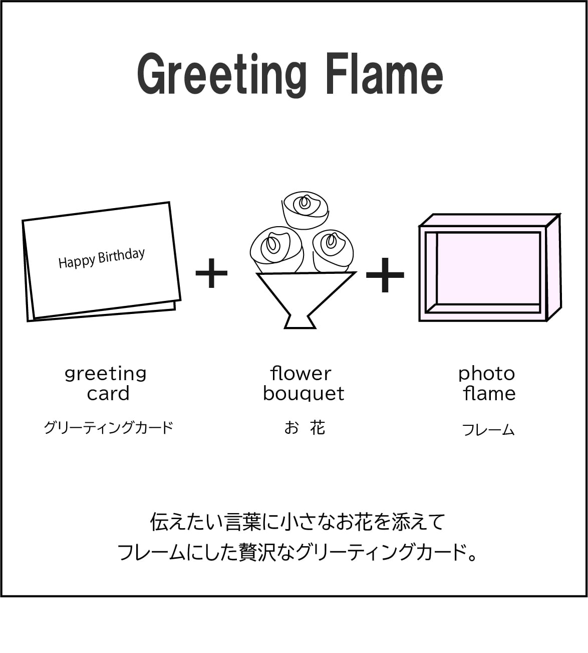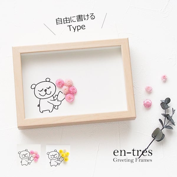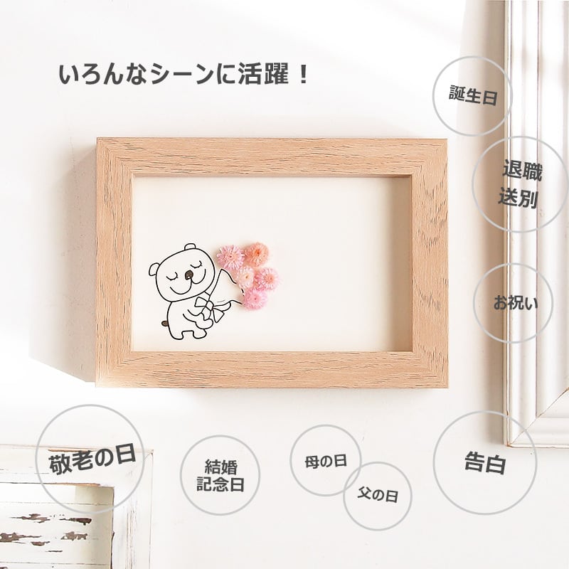 お誕生日やおめでとうの気持ちを伝えたいけど、メールじゃそっけないしお花を贈るのは大げさだし・・・何てことありませんか?そんな時に活躍してくれるのがこのグリーティングフレーム!お花を贈りたい気持ちと届けたいメッセージをフリーに書けるハンドメイドのメッセージカードが出来上がります。