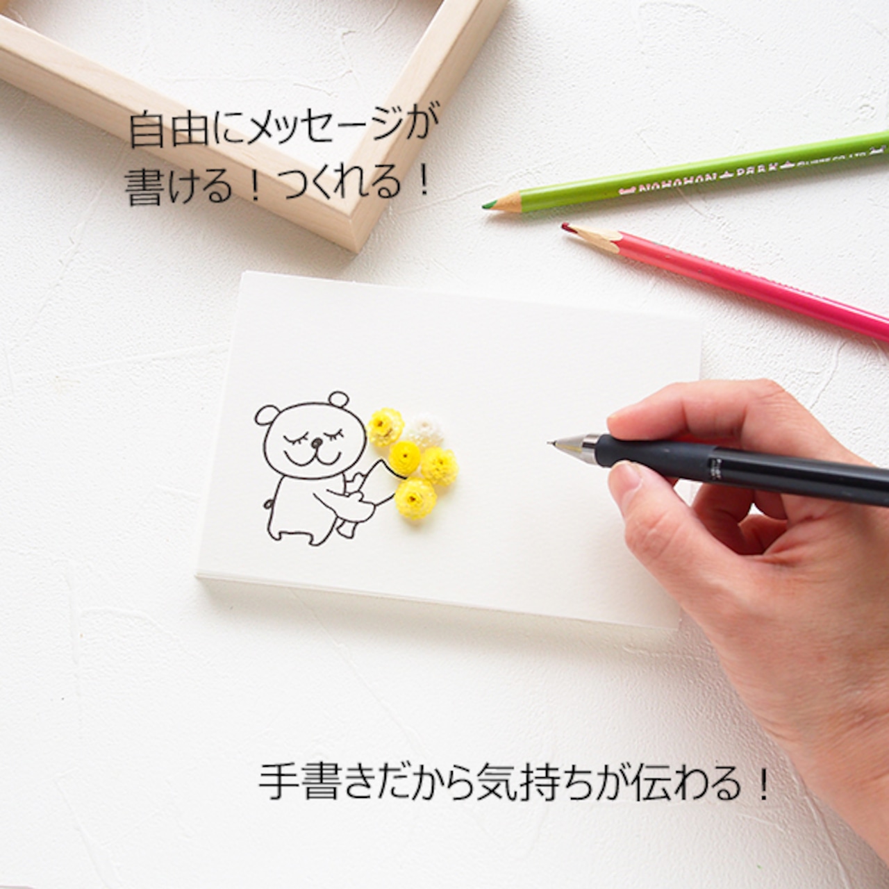 30016 メッセージカード 手書き 多目的 ハンドメイド くま ポスト投函 ギフト 花束 かわいい フォトフレーム プレゼント 送料無料