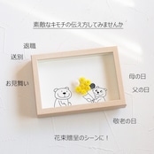 お誕生日やおめでとうの気持ちを伝えたいけど、メールじゃそっけないしお花を贈るのは大げさだし・・・何てことありませんか?そんな時に活躍してくれるのがこのグリーティングフレーム!お花を贈りたい気持ちと届けたいメッセージをフリーに書けるハンドメイドのメッセージカードが出来上がります。