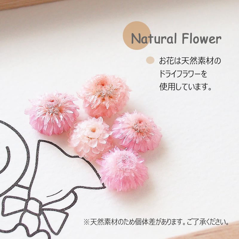 自然素材のお花でデコレーションしたグリーティングカード。フレームに入っているのでもらった後に飾ることができる贅沢なカードです!