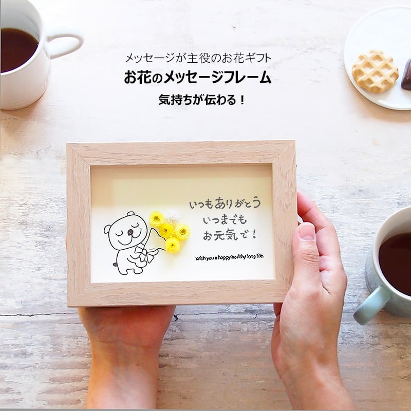 敬老の日に感謝の気持ち伝えたいけど、メールじゃそっけないしお花を贈るのは大げさだし・・・何てことありませんか?そんな時に活躍してくれるのがこのグリーティングフレーム!お花を贈りたい気持ちと届けたい言葉をフレームに閉じ込めました。