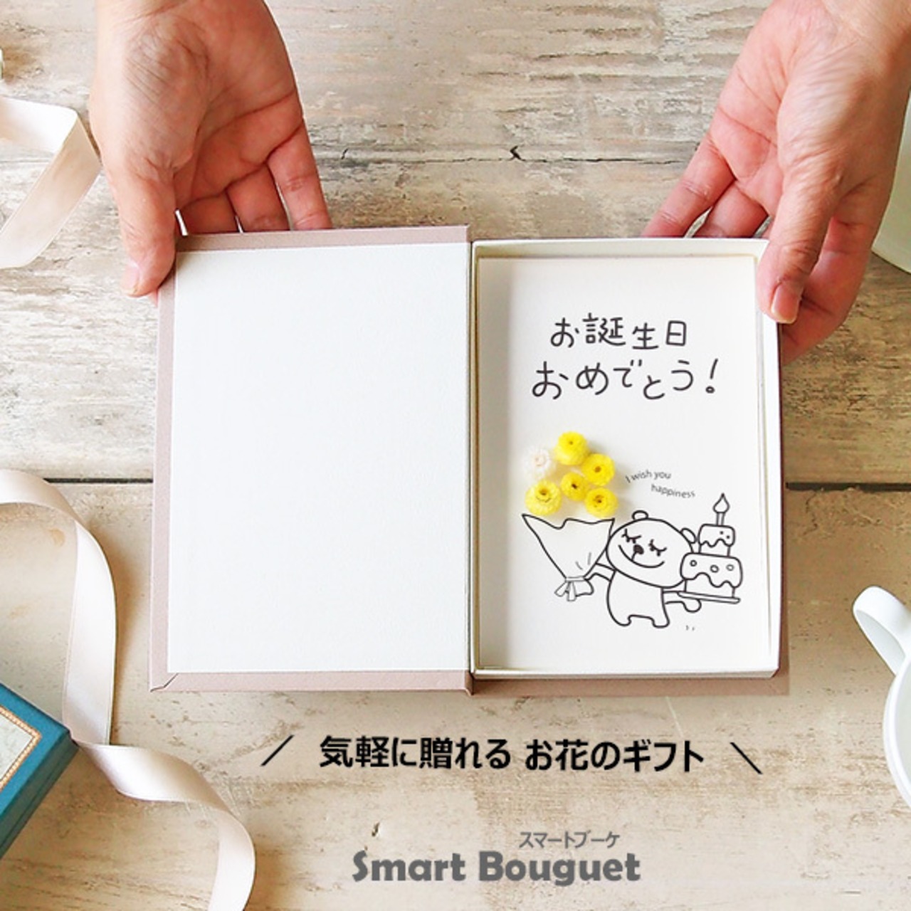 50011 誕生日 メッセージカード ポスト投函 ギフト お花 プレゼント 手作り くま ケーキ 立体 ブック型ボックス バースデーカード 送料無料
